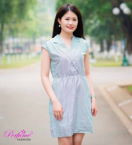 Đầm công sở kiểu sơ mi kẻ sọc xu hướng thời trang 2019