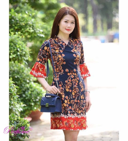 Đầm công sở tay lỡ hoa nhí thổ cấm