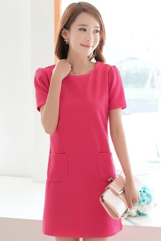 - Đầm suông tay ngắn cổ tròn