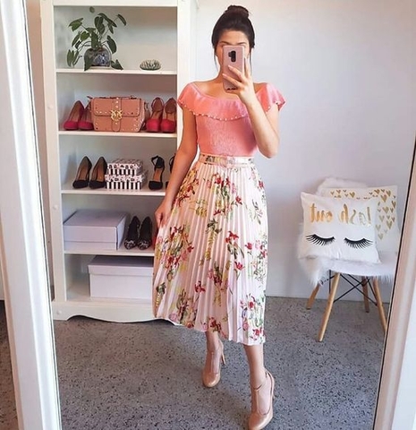 Thiết kế mỏng manh nhưng không kém phần tinh tế, đầm xếp ly tạo nên những đường nếp gấp thu hút sự chú ý của đối phương, hướng cái nhìn đến từng họa tiết mà quên đi đôi chân to của bạn.