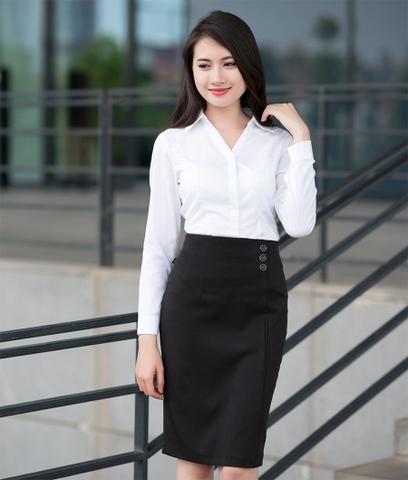2. Áo sơ mi xoan mix với chân váy ôm body