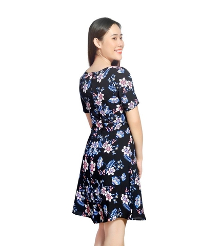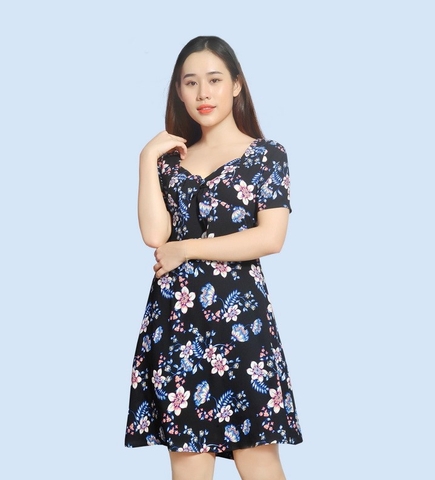 Đầm xòe họa tiết thắt nơ ngực thời trang S200