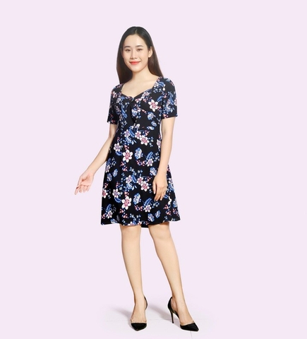 Đầm xòe họa tiết thắt nơ ngực thời trang thiết kế theo kiểu dáng cúp ngực tôn lên vòng một gợi cảm của quý cô.Bước sang tuổi trung niên body các nàng không còn chuẩn nữa. Vì thế chọn đầm suông, xòe sẽ rất hoàn hảo, tôn dáng và che nhiều khuyết điểm. Mẫu đầm sh315 họa tiết hoa đa sắc màu phù hợp tuổi U35 trở đi. Thiết kế không cầu kỳ quý nên cô có thể diện đến công sở, dạo phố, party cùng bạn bè.