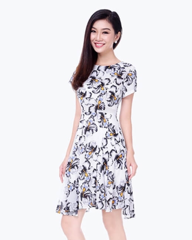 Ưu điểm của chiếc đầm xoè công sở có hoạ tiết