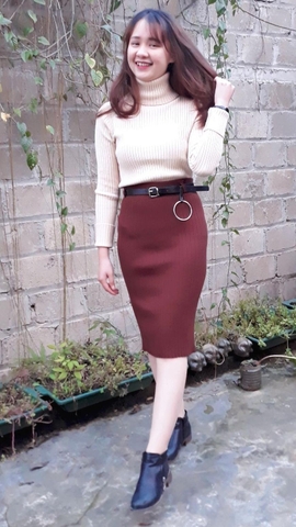 Những ngày xuân tiết trời hơi lạnh nếu như bạn ngại mặc những chiếc đầm cách điệu thì bạn có thể chọn chân váy mix cùng áo len mỏng để có được một set đồ công sở cực lạ mắt. Bạn có thể mix chân váy dạ kẻ kết hợp áo len cao cổ đi kèm đôi giày đen chắc chắn sẽ giúp bạn trông nổi bần bật trước nhiều người.