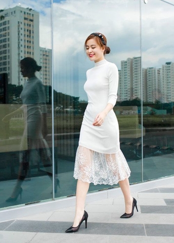 Đầm công sở body tông trắng giúp nàng lung linh đón tết